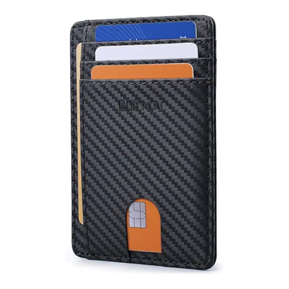 The Buffway Slim Minimalist Wallet offers a very slim profile designed to hold several cards and folded cash without adding bulk. It fits easily in front pockets or small bags.